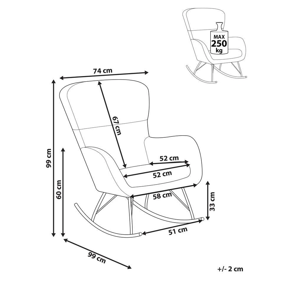 Belangrijkste eigenschappen: Schommelfunctie, Perfect gevormde armleuningen, Gezellige uitstraling, Past uitstekend in elk interieur, Hoogwaardige kwaliteit stoffering, Robuust frame