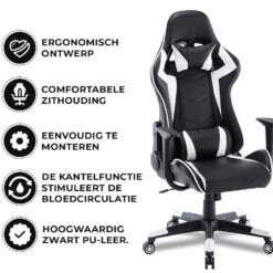 Gamestoel Las Vegas – Zwart / Wit – Gaming Stoel – Bureaustoel