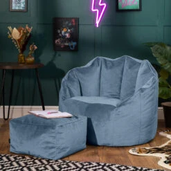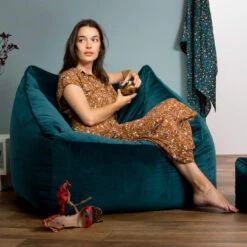Icon Zitzak En XL Poef Natalia – Fluwelen Zitzak – Blauwgroen