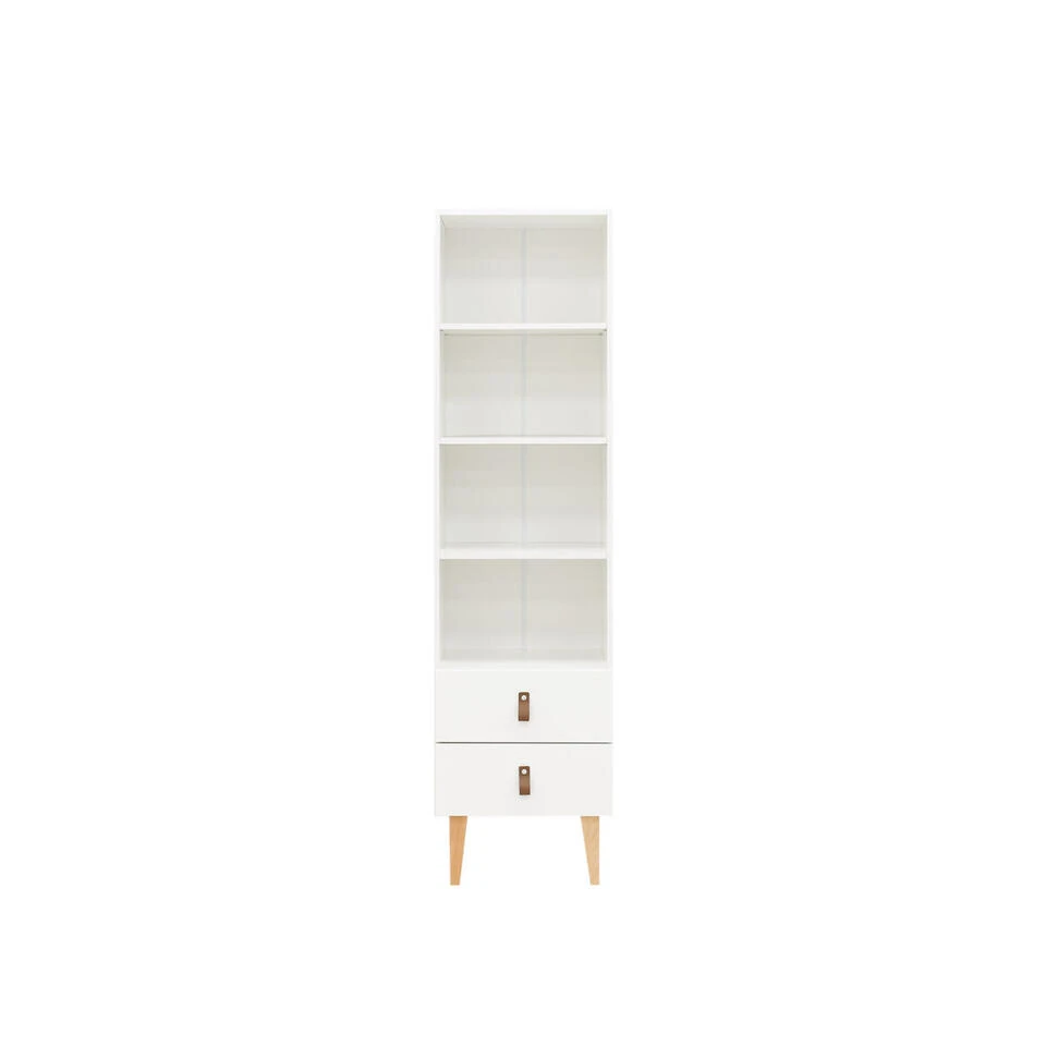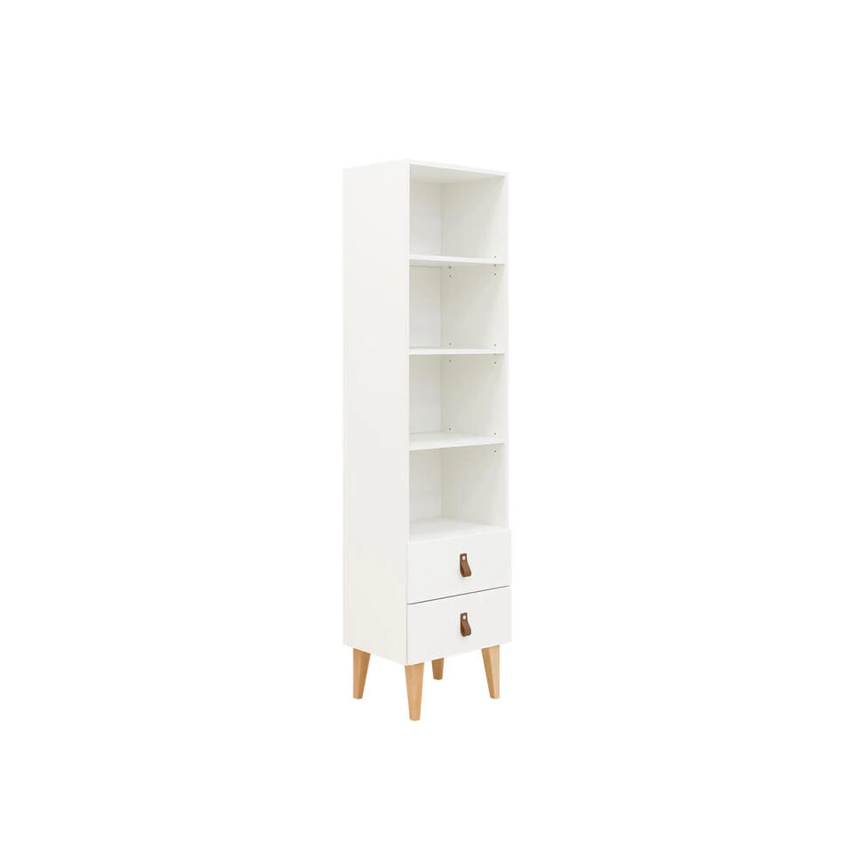 Deze boekenkast van de serie Indy is compact van vorm, maar wat kan je er veel in kwijt! Deze kast is voorzien van drie in hoogte verstelbare legplanken en twee laden om spulletjes in op te bergen. Kenmerkend voor de serie Indy zijn de leren handgreep en ranke beuken pootjes. Ideaal voor de tienerkamer! Maar wat dacht je van de babykamer? Al jouw voorleesboeken kan je hier in opbergen.