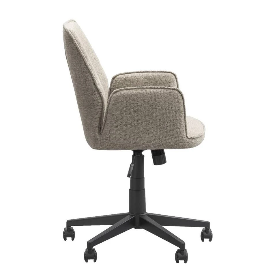 De bureaustoel Raffy in de kleur zand is de perfecte mix van comfortabel en stijlvol. Deze draaibare stoel is praktisch en in hoogte verstelbaar, waardoor hij ideaal is voor elke werkplek. Bovendien staat hij leuk in je interieur, met een warme uitstraling die elke ruimte direct opfleurt. Raffy schuif je gemakkelijk bij als extra zitplek aan je eettafel en zal niet misstaan!