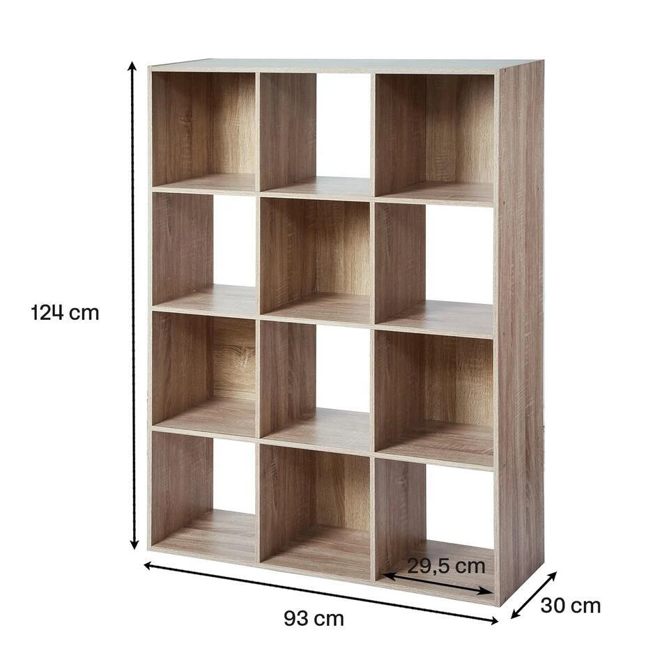 De opbergkast met 12 open vakken is de ideale oplossing voor degenen die op zoek zijn naar een functionele en veelzijdige opbergruimte. Met een hoogte van 120 cm biedt deze kast talloze opbergmogelijkheden om uw spullen praktisch en esthetisch te organiseren. Of het nu voor uw woonkamer, kantoor, slaapkamer of andere kamer is, deze veelzijdige kast past zich aan elke omgeving aan. De opbergkast met 12 open vakken is de perfecte oplossing om uw opbergruimte te optimaliseren en tegelijkertijd een vleugje stijl aan uw interieur toe te voegen. Laat uw spullen niet langer rommelig rondslingeren, maar organiseer ze functioneel en esthetisch met deze veelzijdige kast. Kenmerken: Binnenafmetingen van de vakken: L29 x D28 x H29 cm. Gemaakt van duurzaam spaanplaat met een dikte van 12 mm. Verkrijgbaar in eiken en wit. Afmetingen: L93,3 x D29,8 x H124,2 cm. Gewicht: 25 kg.