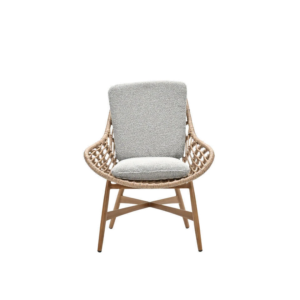Het uitstekende zitcomfort, samen met het elegante ontwerp, maakt dat je deze stoel niet kunt missen. De Castello stoel heeft een robuust aluminium frame, en de kuip is afgewerkt met stijlvol, tijdloos wicker. De kussens zijn vervaardigd uit boucle garen, wat ze een zachte, teddy-look geeft en zorgt voor een heerlijk zacht gevoel.