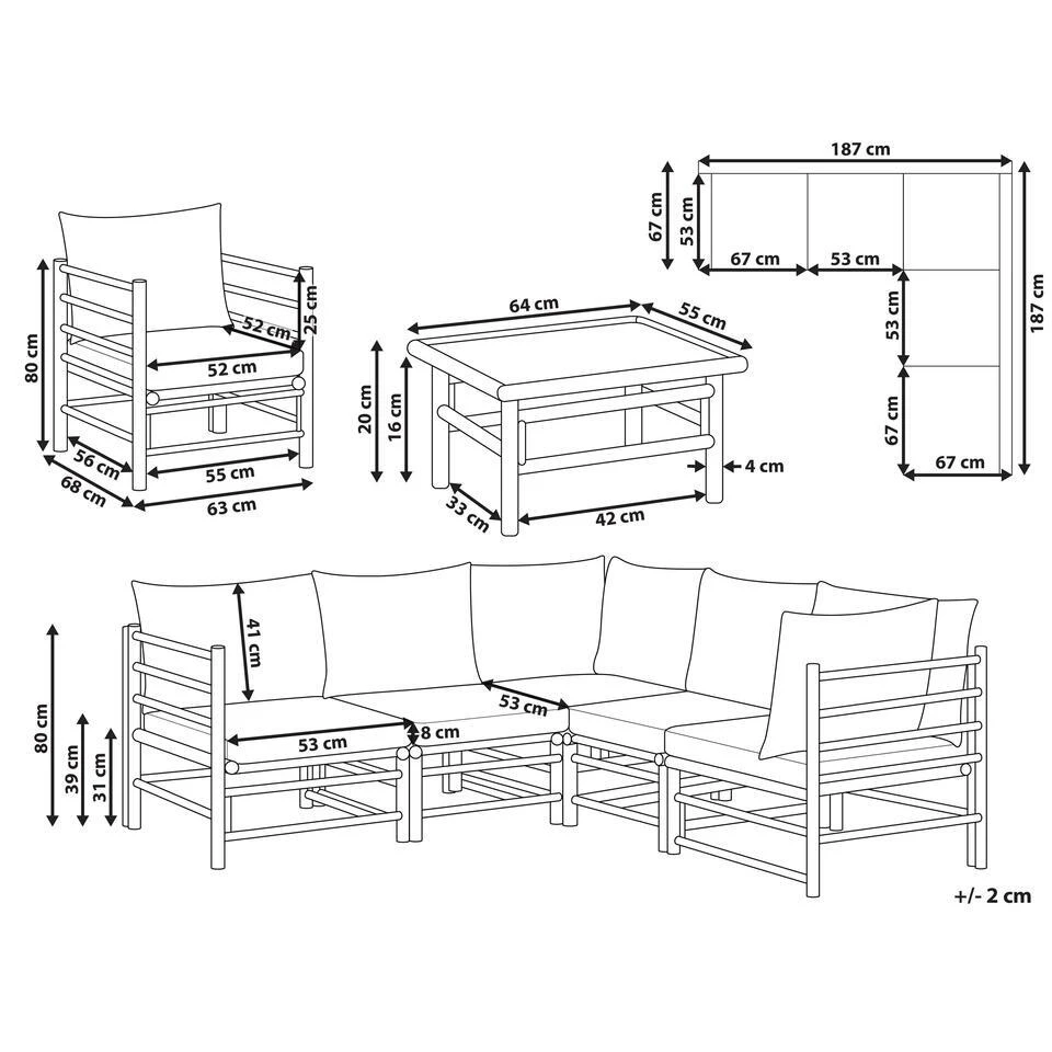 Afmetingen 4-zitsbank: 187x187x80