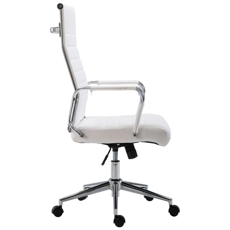 De exclusieve bureaustoel Columbus overtuigt niet alleen met zijn moderne uiterlijk, ook in termen van comfort kan niemand hem voor de gek houden. De hoogwaardige bekleding en de onderhoudsvriendelijke kunstlederen overtrek zorgen voor een aangename zitervaring. De zithoogte is traploos instelbaar en garandeert een ergonomische zitpositie. Bovendien is de bureaustoel uitgerust met een kantelmechanisme, dat meer bewegingsvrijheid biedt. Het elegante chromen frame en de stevige gebogen armleuningen met kunstlederen overkapping geven het geheel iets extra’s. De stabiliteit wordt verzekerd door het metalen frame in chroomlook.