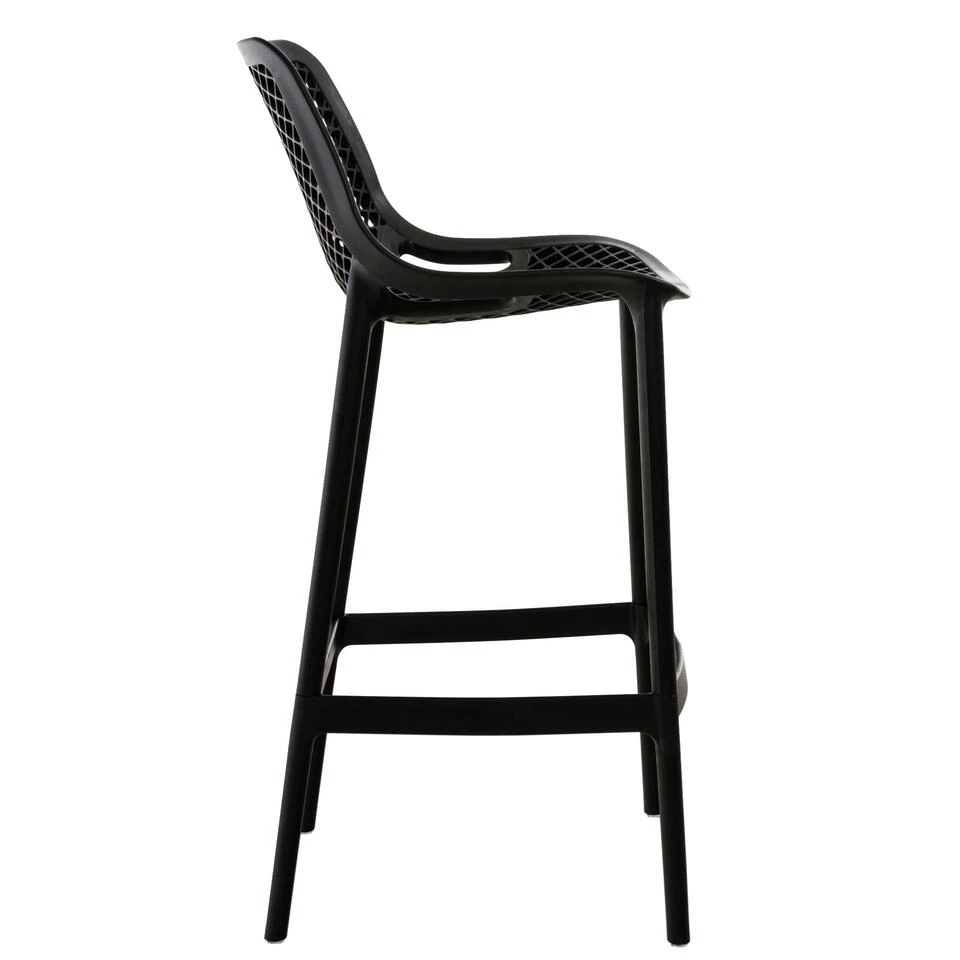 Deze uiterst chique en praktische Air barkrukken passen met hun moderne uitstraling in elke woonruimte. De uitstekende afwerking voldoet aan de hoogste eisen, zowel thuis als buitenshuis. De barkrukken zijn volledig gemaakt van polypropyleen en zijn dus waterafstotend en bestand tegen Uv-licht.