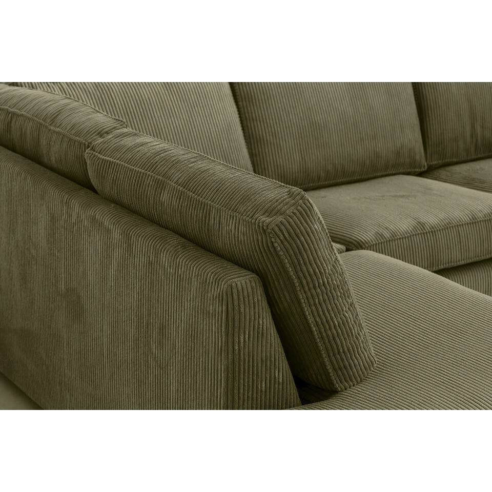 De bank Stuttgart is een tijdloze hoekbank uitgevoerd in een olijfgroene ribstof. De bank heeft een robuuste uitstraling waarop je heerlijk kunt ontspannen dankzij de hoek aan de linkerkant. De bank is lekker ruim zodat je er met het hele gezin gezellig op kunt kruipen. Door de olijfgroene kleur is deze bank makkelijk te combineren. De afmetingen van de hoekbank Stuttgart is 80x267x207 cm (hxbxd).
