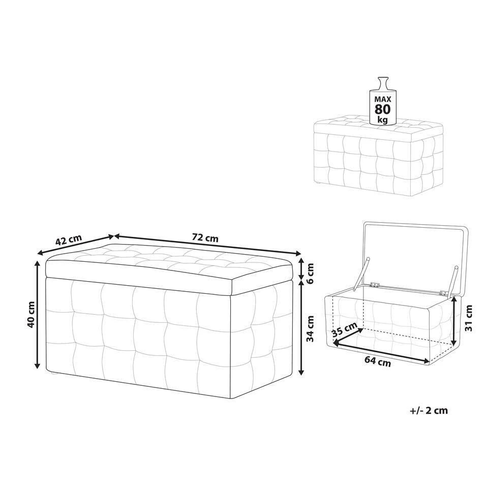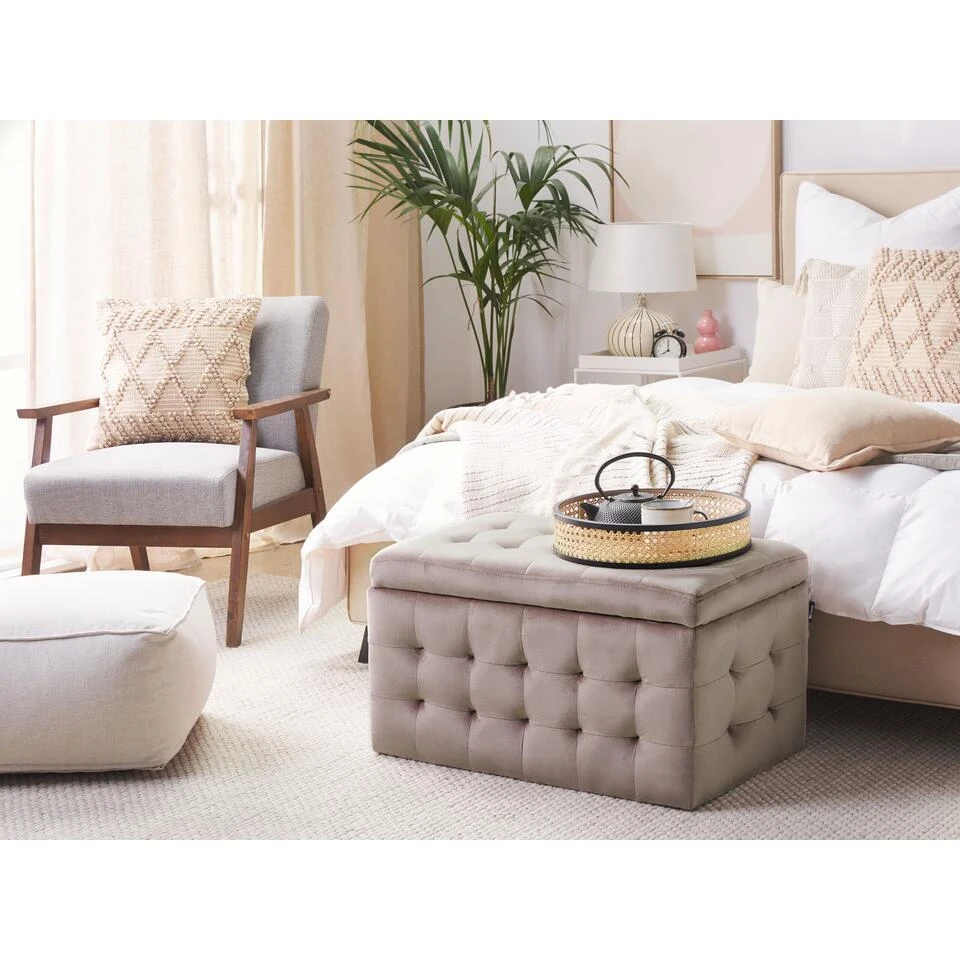 Belangrijkste eigenschappen: Met klassieke, getufte details, Zijdezacht, fluwelen stof, Meerdere toepassingsmogelijkheden, Functionele, grote opbergruimte, Beschermdoppen voor oppervlaktebescherming