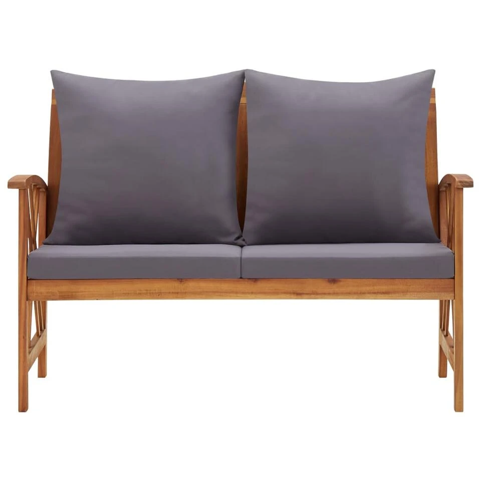 Dit tuinbankje is gemaakt van massief acaciahout, een hardhout met dichte nerven. Het mooi vormgegeven bankje is stabiel, duurzaam en opvallend. Het met olie afgewerkte oppervlak is gemakkelijk schoon te maken met een vochtige doek en geschikt voor buitengebruik. De inbegrepen zitkussens en rugkussens bieden optimaal zitcomfort. De houten bank maakt hem een ideale plek om te relaxen en met je gezinsleden te kletsen in je tuin, terras of balkon.