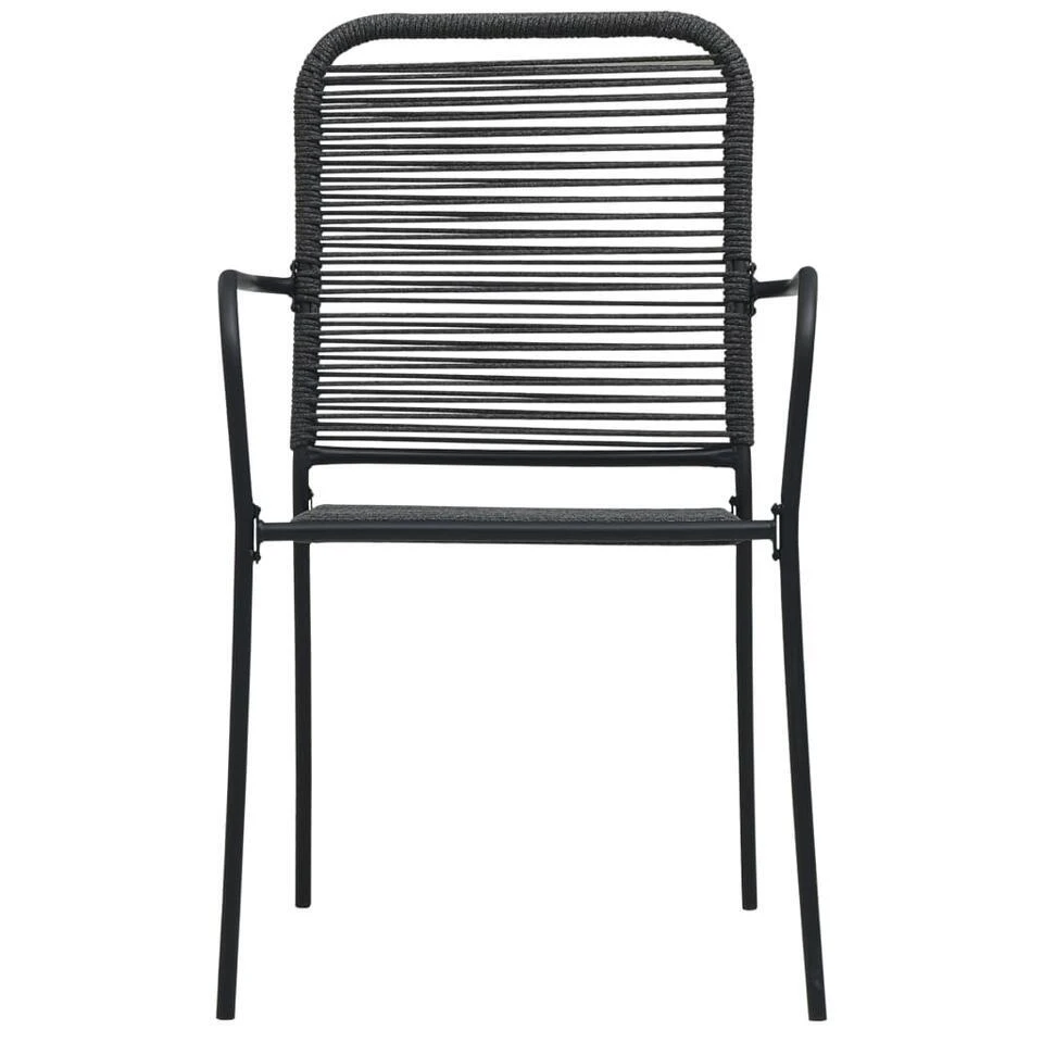 Deze stoelenset is gemaakt van katoenen touw dat geweven is over een gepoedercoat stalen frame. Hij is stabiel en bestand tegen slecht weer en uv-stralen.
