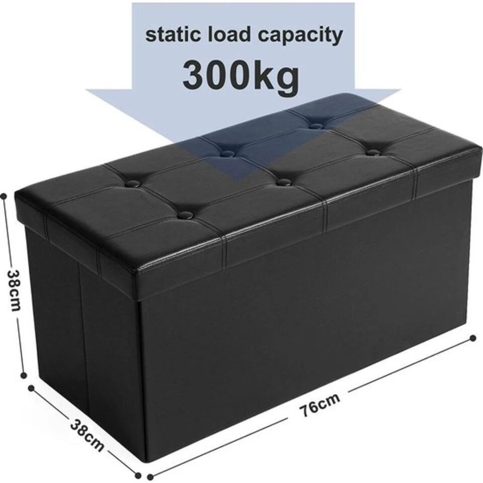 Ontdek de veelzijdigheid van deze zitpoef die niet alleen fungeert als comfortabele zitbank maar ook als praktische opbergruimte. Met een opvouwbaar design is deze 2-zits poef een perfecte aanvulling voor elke ruimte en kan hij tot maar liefst 300 kg dragen. Gemaakt van hoogwaardige kunstleer in elegant zwart en met afmetingen van 76 x 38 x 38 cm, is deze poef zowel stijlvol als functioneel.